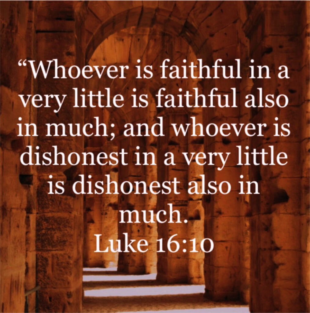 Our scripture today is Luke 16:10 (NRSV).