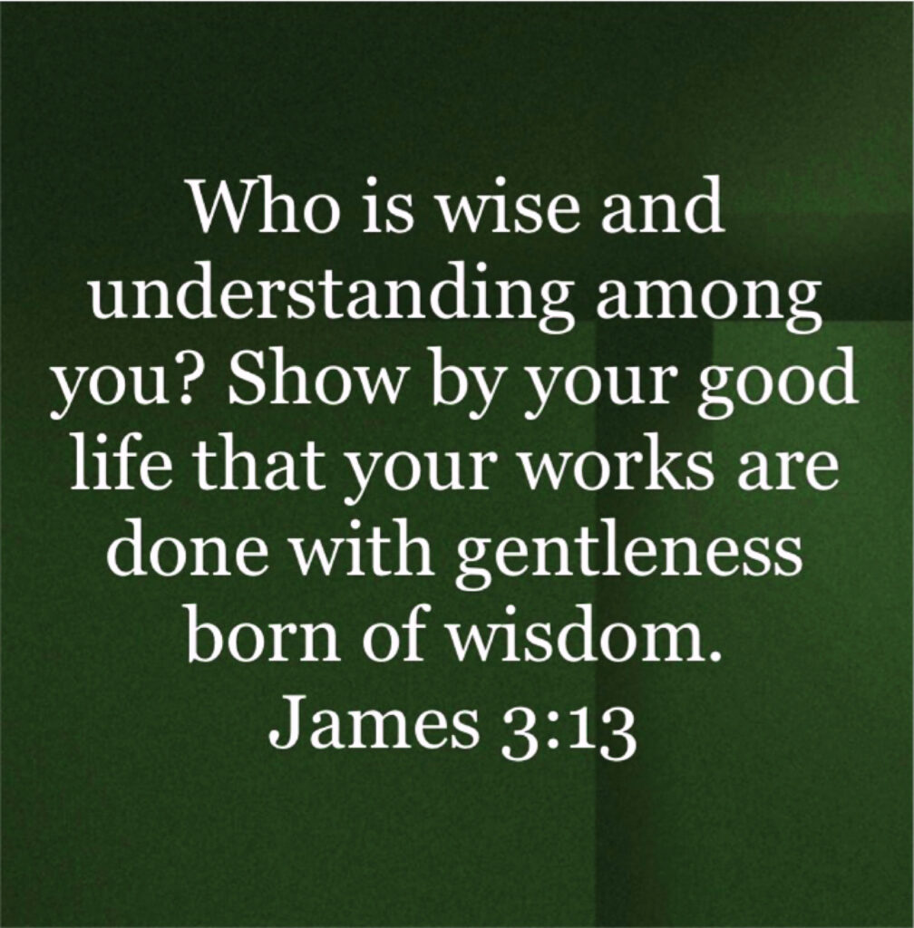 Who is wise and understanding among you? Show by your good life that your works are done with gentleness born of wisdom.
