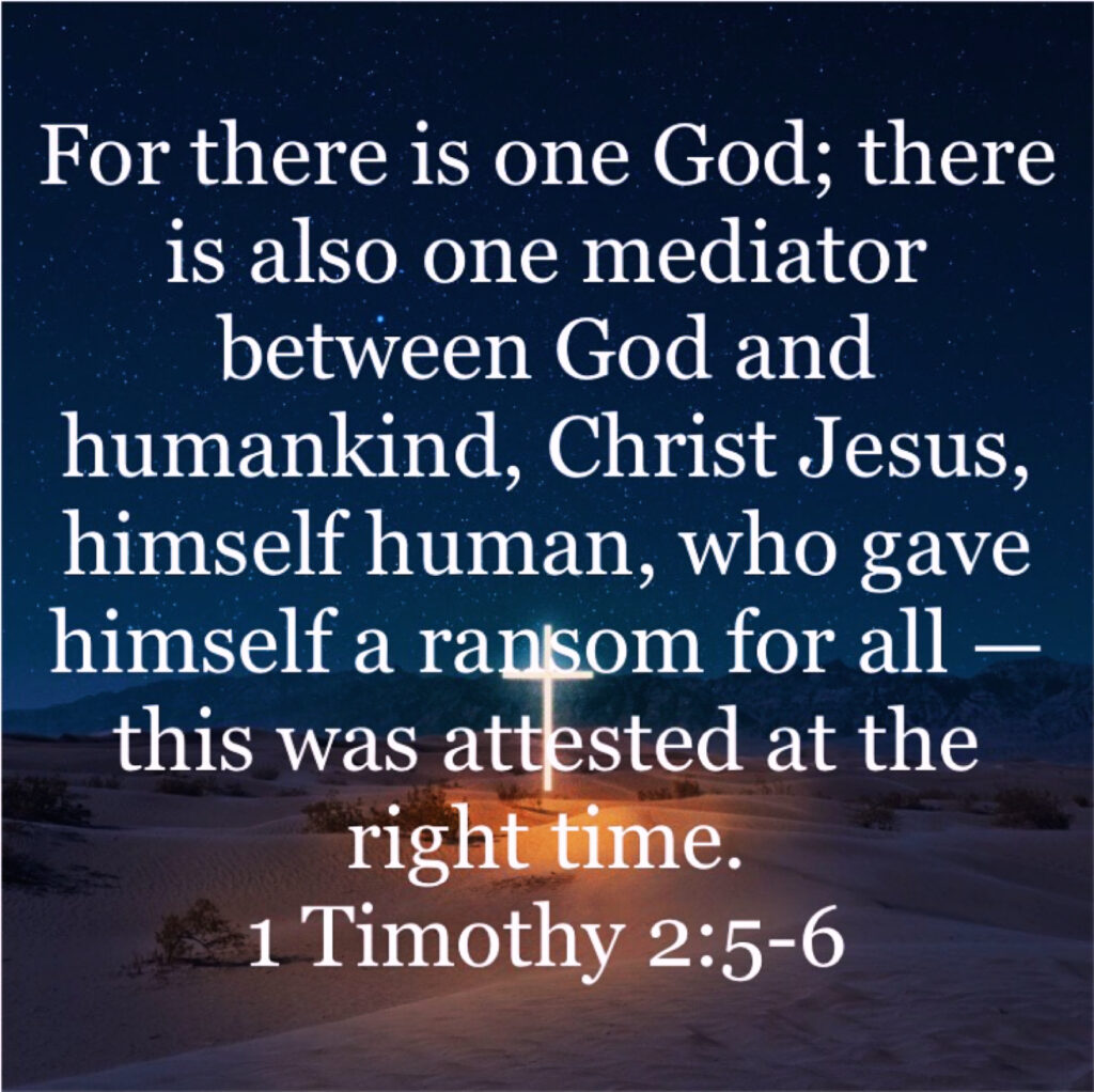 For there is one God; there is also one mediator between God and humankind, Christ Jesus, himself human, who gave himself a ransom for all —this was attested at the right time.