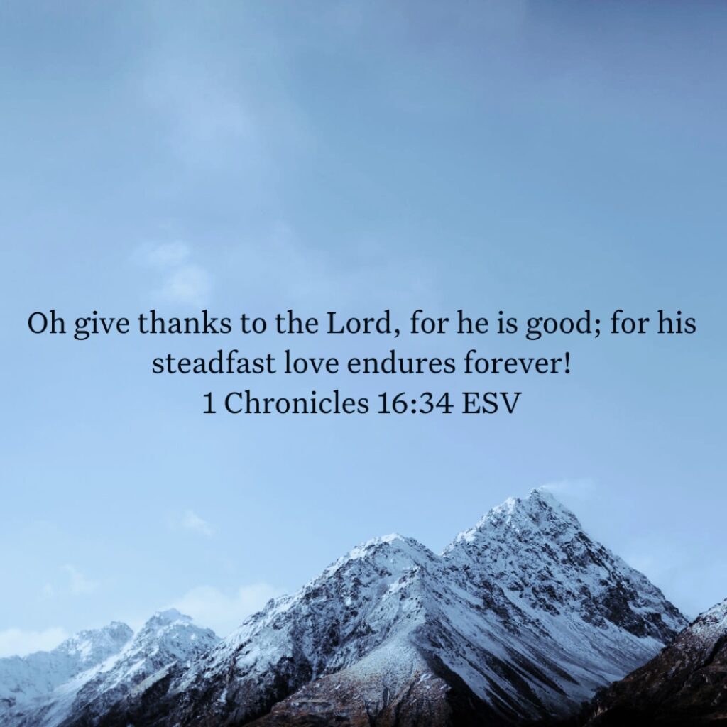Our scripture this morning is 1 Chronicles 16:34 (ESV).