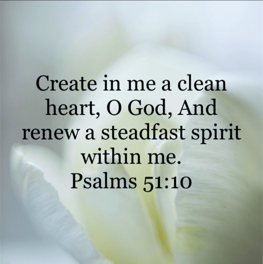 Create in me a clean heart, O God, And renew a steadfast spirit within me.