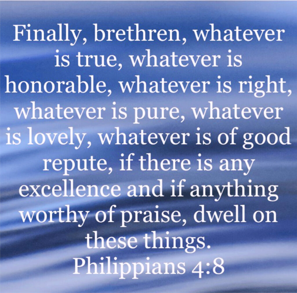 Our scripture this morning is Philippians 4:8 (NASB1995).
