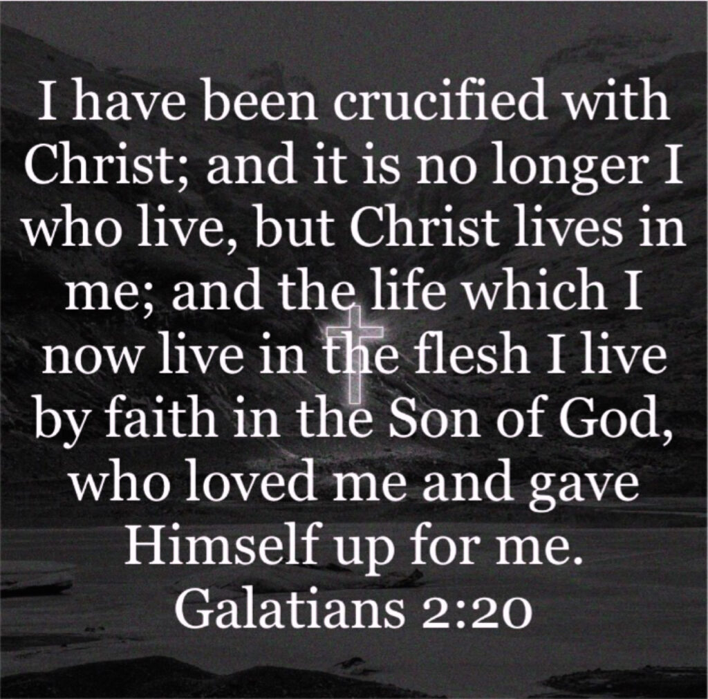 I have been crucified with Christ; and it is no longer I who live, but Christ lives in me; and the life which I now live in the flesh I live by faith in the Son of God, who loved me and gave Himself up for me.