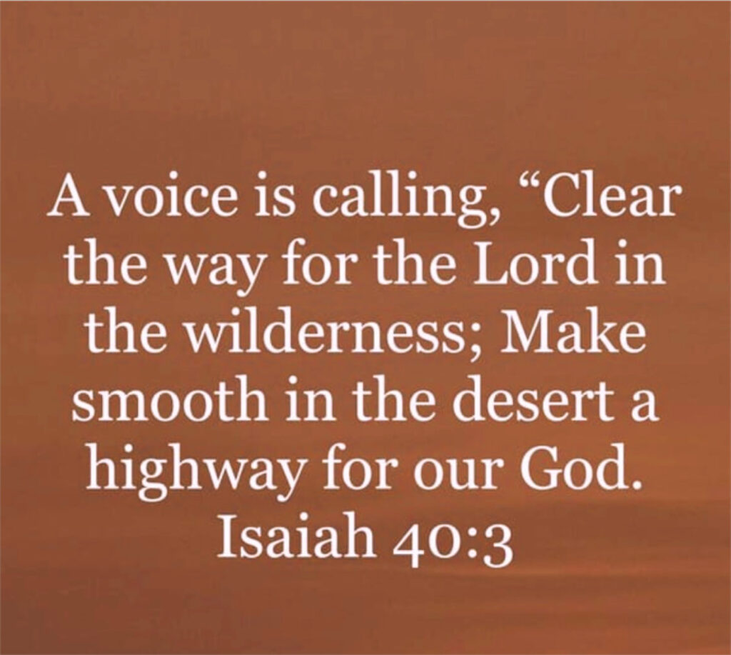 A voice is calling, “Clear the way for the Lord in the wilderness; Make smooth in the desert a highway for our God.”