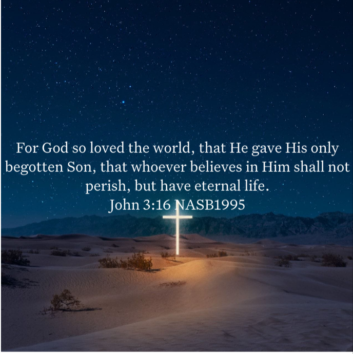 Our scripture today is John 3:16 (NASB1995).For God so loved the world, that He gave His only begotten Son, that whoever believes in Him shall not perish, but have eternal life.