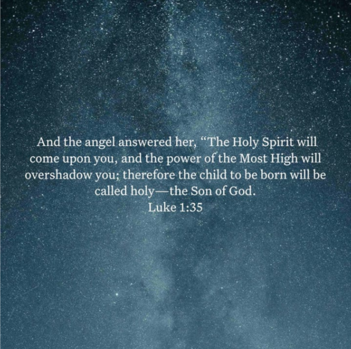 And the angel answered her, “The Holy Spirit will come upon you, and the power of the Most High will overshadow you; therefore the child to be born will be called holy—the Son of God.”
