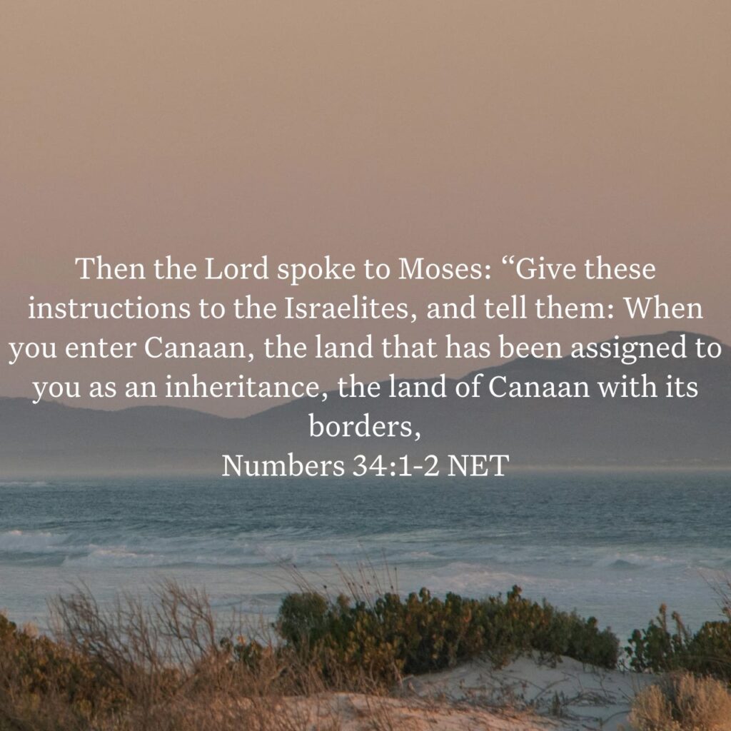 Then the Lord spoke to Moses: “Give these instructions to the Israelites, and tell them: When you enter Canaan, the land that has been assigned to you as an inheritance, the land of Canaan with its borders…