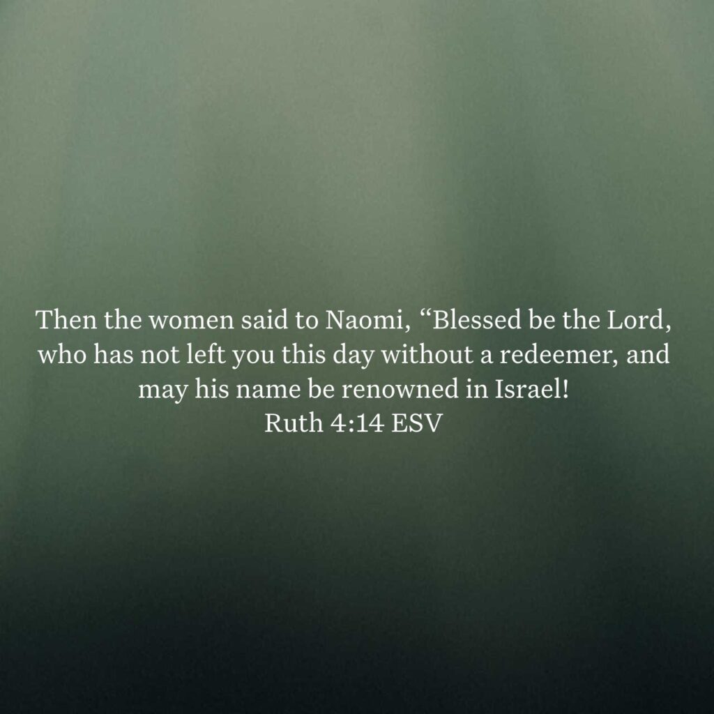 Then the women said to Naomi, “Blessed be the Lord, who has not left you this day without a redeemer, and may his name be renowned in Israel!”
