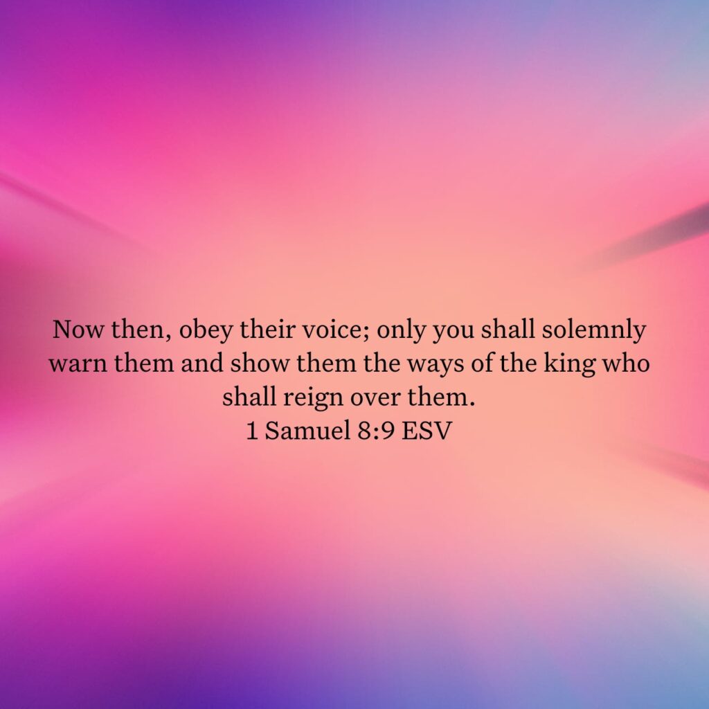 Now then, obey their voice; only you shall solemnly warn them and show them the ways of the king who shall reign over them.