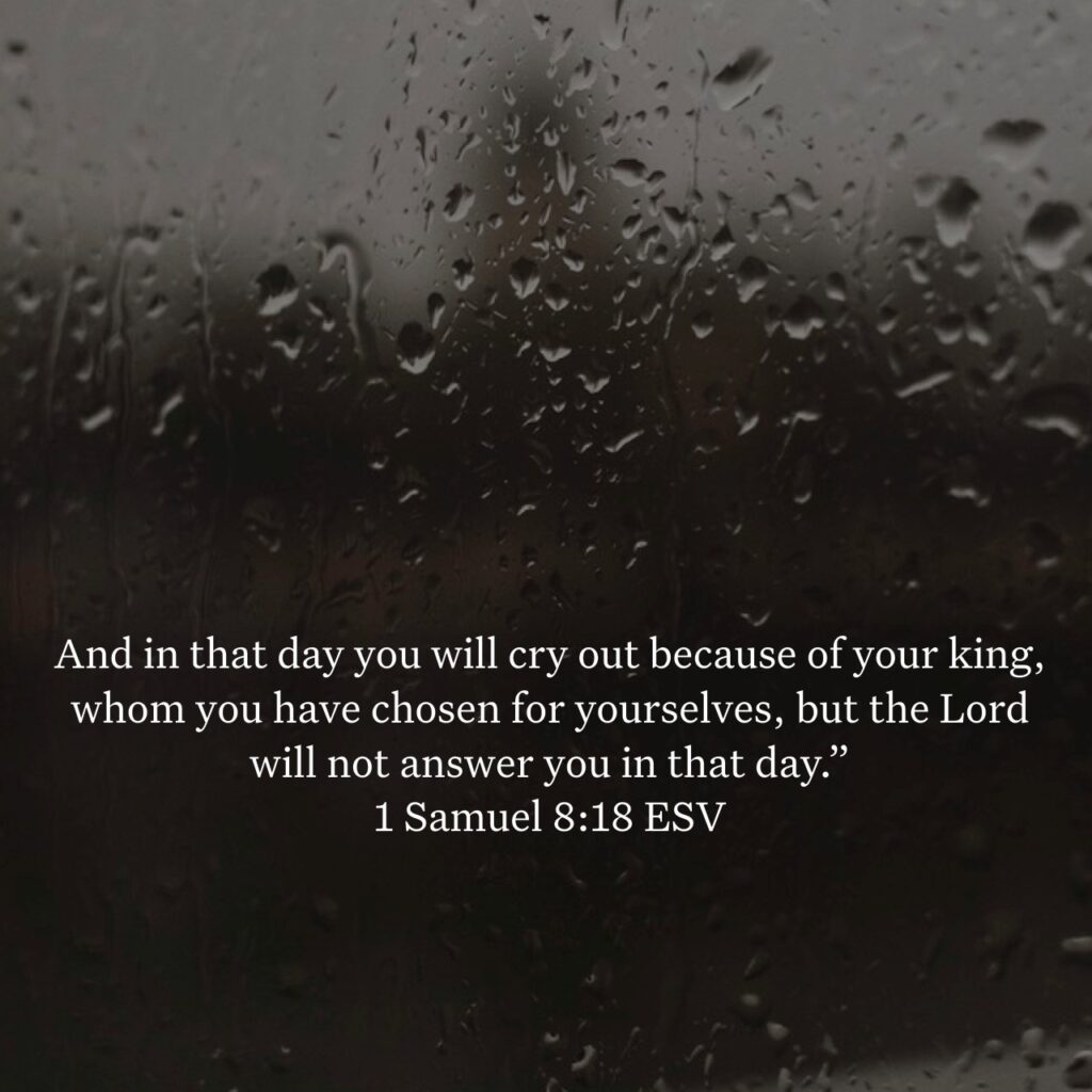 “And in that day you will cry out because of your king, whom you have chosen for yourselves, but the Lord will not answer you in that day.”‭‭