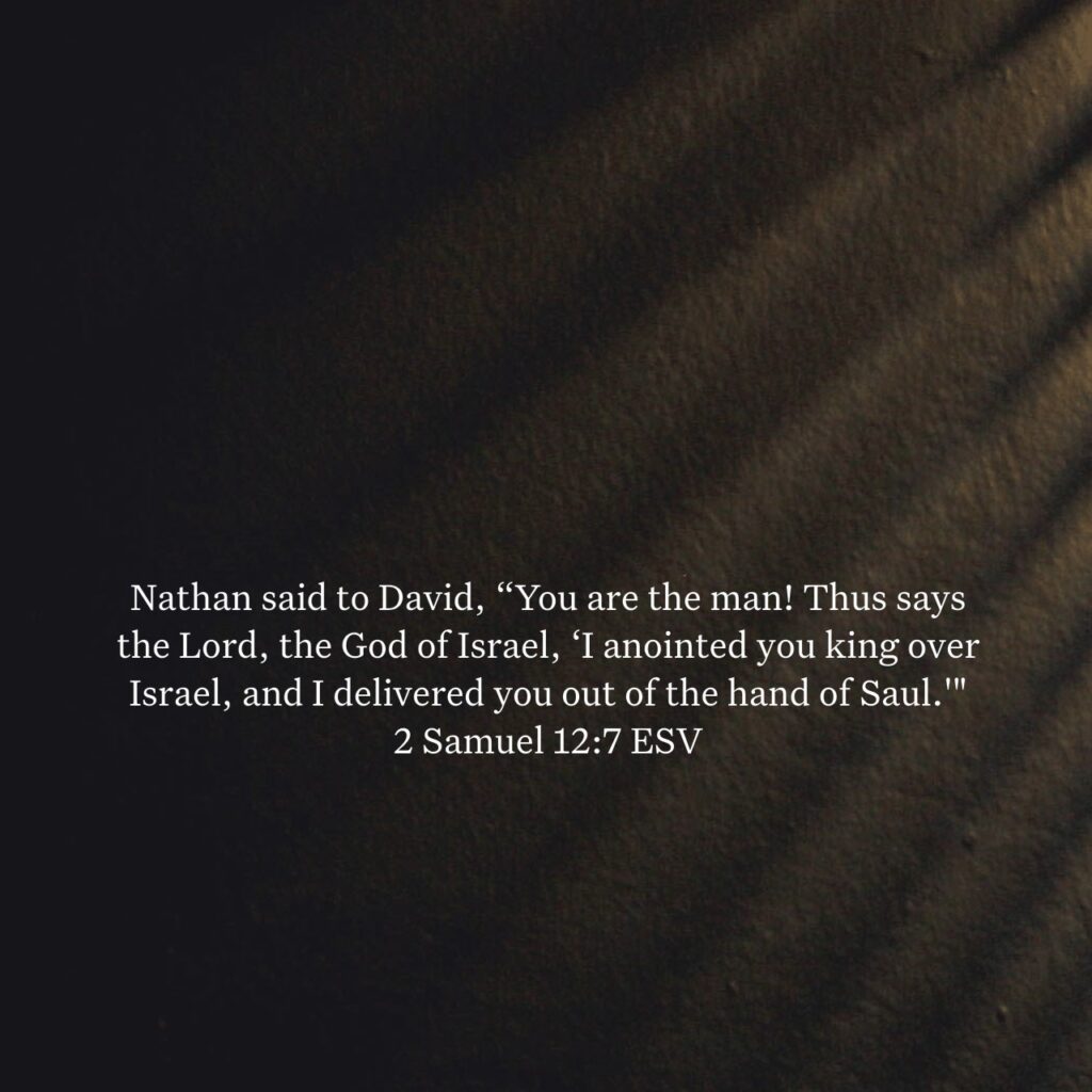 Nathan said to David, “You are the man! Thus says the Lord, the God of Israel, ‘I anointed you king over Israel, and I delivered you out of the hand of Saul.’”
